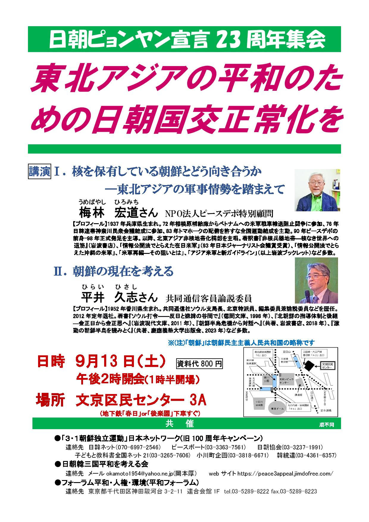 集会・学習会日朝ピョンヤン宣言23周年集会