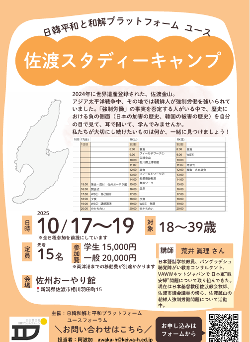 アジア太平洋戦争中、その地では朝鮮人が強制労働を強いられていました。「強制労働」の事実を否定する人がいる中で、歴史における負の側面(日本の加害の歴史、韓国の被害の歴史)を自分の目で見て、耳で聞いて、学んでみませんか。
