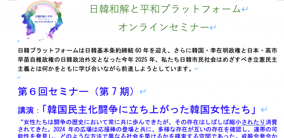 日韓和解と平和プラットフォームオンラインセミナー2025第6回
