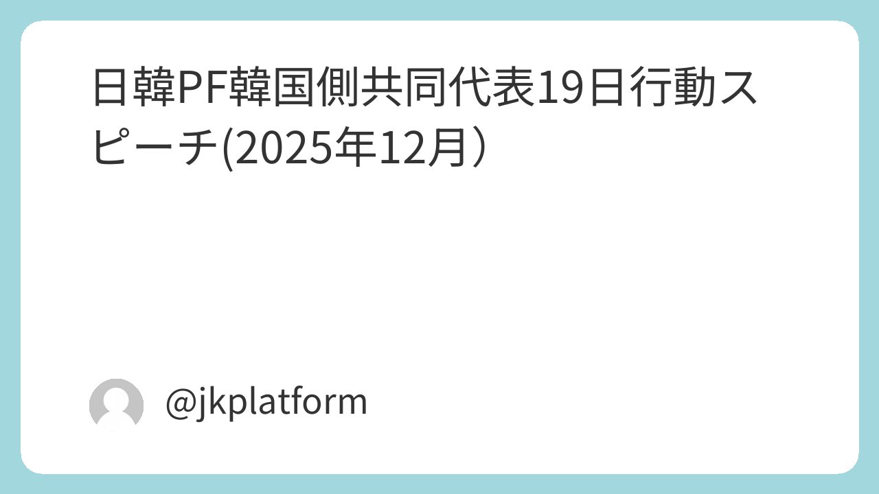 スピーチ・談話2025年12月19日国会前19日行動において日韓プラットフォーム韓国側の金敬敏共同代表が来日し、スピーチをして下さいました。