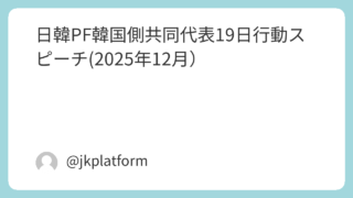 PDFチラシはこちら日韓和解と平和プラットフォームは6月初旬にメールマガジンを発行し、賛同会員の皆さまに配信します。当面は不定期発行ですが、隔月発行を目標にしています。賛同会員となっていただけますように皆さまに呼びかけます。創刊号の掲載記事...